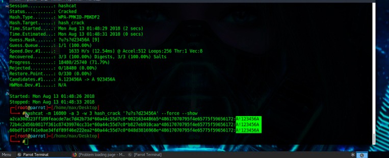 Solo puedo sacar una conclusión de todo esto ... este método es un corte por encima de mis opciones de ataque anteriores, además, busqué una velocidad que, aunque no mucho más alta que en aircrack-ng, pero aún así, si tienes en cuenta que Si algunas personas tienen buenas tarjetas gráficas, esto generalmente es de gran ayuda. además, ya no hay necesidad de esperar al usuario e interceptar el "apretón de manos" de estos scripts, ya que puede hacer todo esto en un punto pero en varios al mismo tiempo ... agregando BSSID de AP diferentes al archivo de texto primario.